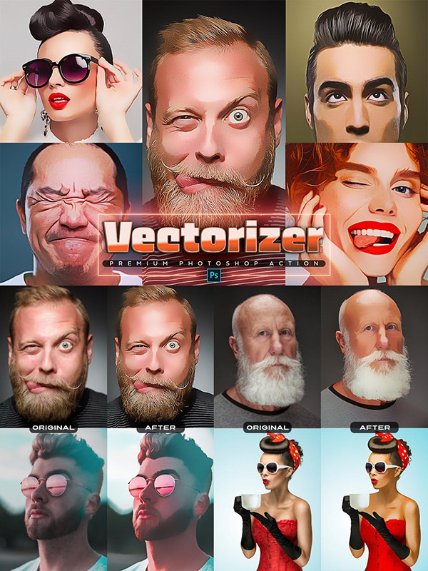 矢量化卡通绘画照片处理PS动作,Photoshop动作,矢量化卡通绘画效果,ATN格式,205KB