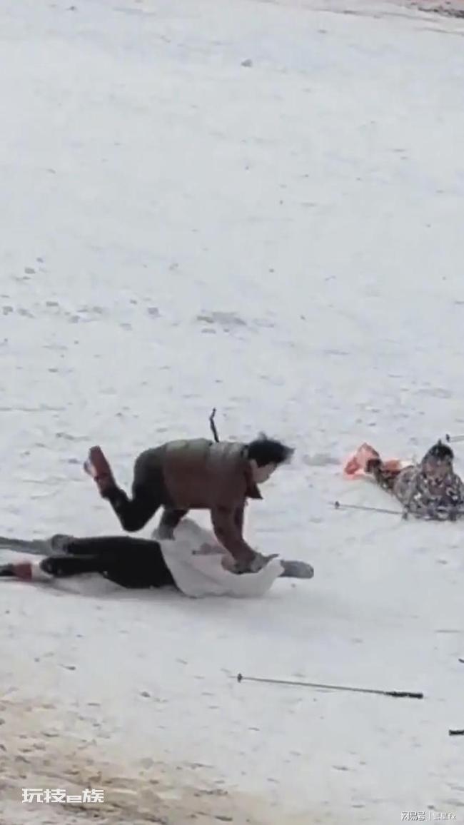 原来,当天女子在滑雪场滑雪时,一下子失控了,将远方一男子撞倒在地,两个人撞了个满怀,男子趴在了女子的身上。