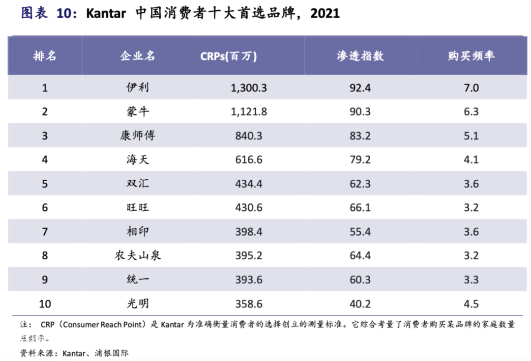 乳企还有多少提量空间?从咨询公司凯度在关于“中国消费者十大首选品牌”的调研中可以看出,乳企整体提量的空间并不大。无论是消费者渗透,还是消费频次,伊利和蒙牛均占据了前两把交椅;光明乳业也跻身了前十。