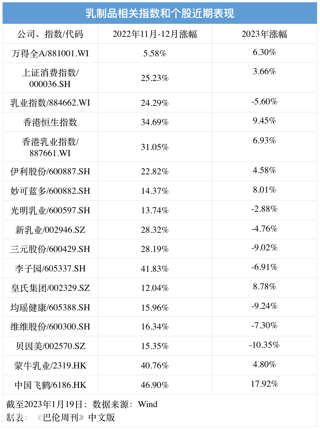 乳业股就是这样一张暧昧的“明牌”。从2022年最后两个月的涨幅来看,这个子板块的表现与大盘趋同,部分个股的涨幅甚至超越了大盘——这是明确的事实。不过,对于乳业公司们的销售回暖和估值修复,并不是所有人都认可。