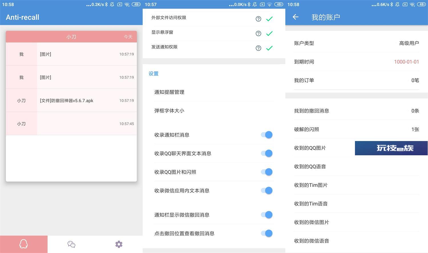 安卓免root查看撤回消息的神器来了,支持QQ和微信,再也不怕错过各种消息和图片,软件里有详细使用帮助,使用前按说明开启全部权限即可,效果因机而异,支持无限查看QQ/TIM图片闪照,消息防止复读、微信语言助手、自定义通知管理等,已解锁高级版。